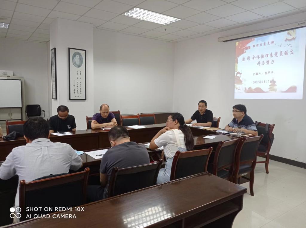 以深入学习贯彻习近平新时代中国特色社会主义思想,学习贯彻党的十九届六中全会精神为主题,巩固党史学习教育成果,威廉体育官方网站物理系党支部于6月17日在雁塔校区煤科大楼召开2021年度组织生活会,开展民主评议党员。支部全体党员参加了会议,会议由支部书记杨华平主持,威廉体育官方网站经理张仲华到会指导。