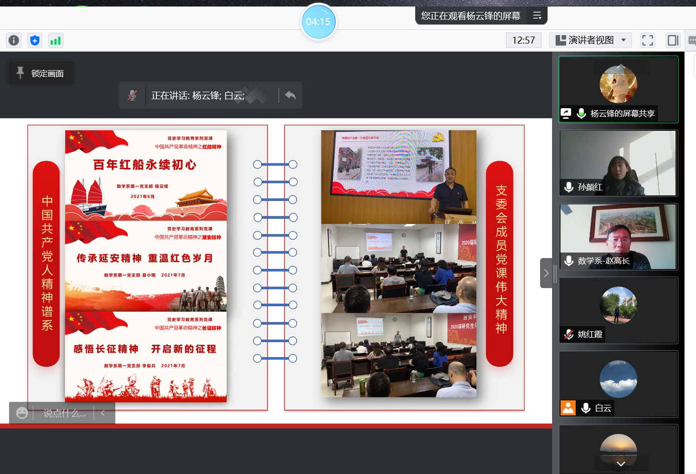 会议由党委书记孙颜红主持,7位党支部书记分别围绕党史学习教育、政治理论学习、履行党建工作第一责任人职责、严肃党内政治生活、强化政治功能、“我为师生办实事”实践活动、特色工作、存在不足及下一步工作思路等方面进行了在线述职汇报。