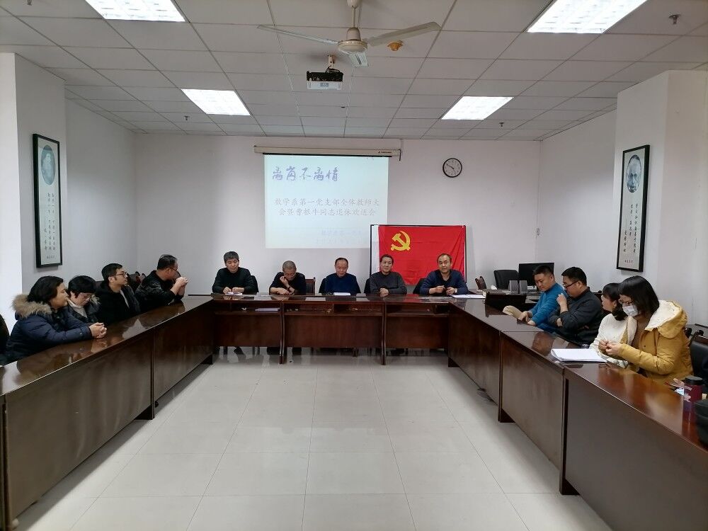 1月18日下午,威廉体育官方网站数学系第一党支部在雁塔校区为曹根牛老师举行了一场简朴而温馨的退休座谈会。数学系第一党支部全体教师参加了座谈会。