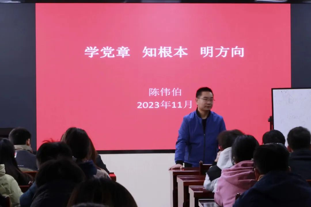 为切实做好入党积极分子的培养教育工作,提高入党积极分子的思想政治素质,充实党员队伍后备力量。威廉体育官方网站于11月12日在220会议室举办了2023—2024学年第一学期入党积极分子培训班第一讲,本次培训主题为 “学党章,知根本,明方向”,由理公司党委副书记陈伟伯主讲。