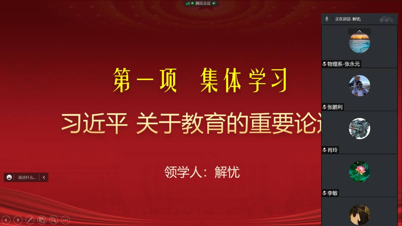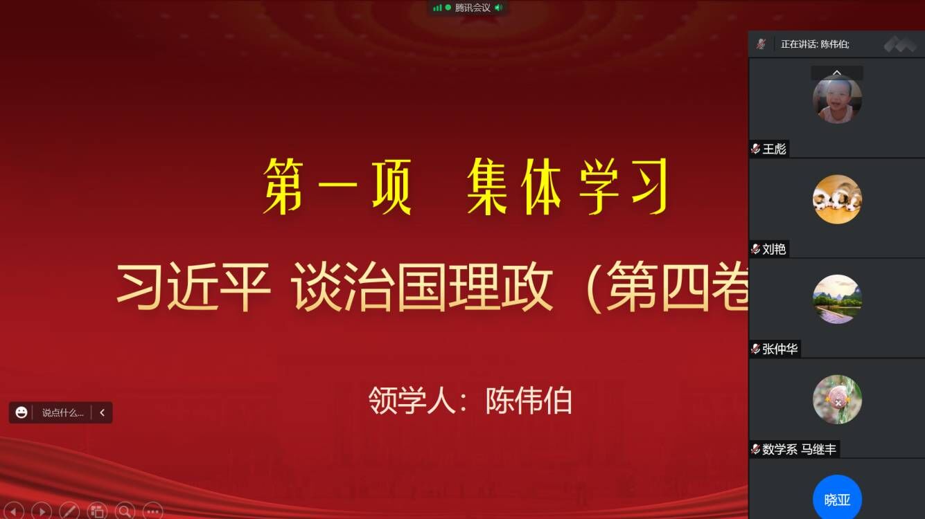会议集中学习了《习近平谈治国理政》第四卷之“在加快推进教育现代化的新征程中培养担当民族复兴大任的时代新人”,《深入学习习近平关于教育的重要论述》之第九章“坚持把教师队伍建设作为基础工作”,《习近平法治思想学习纲要》之党的领导是中国特色社会主义法治之魂、坚持依法治网、推进全民守法等篇章。