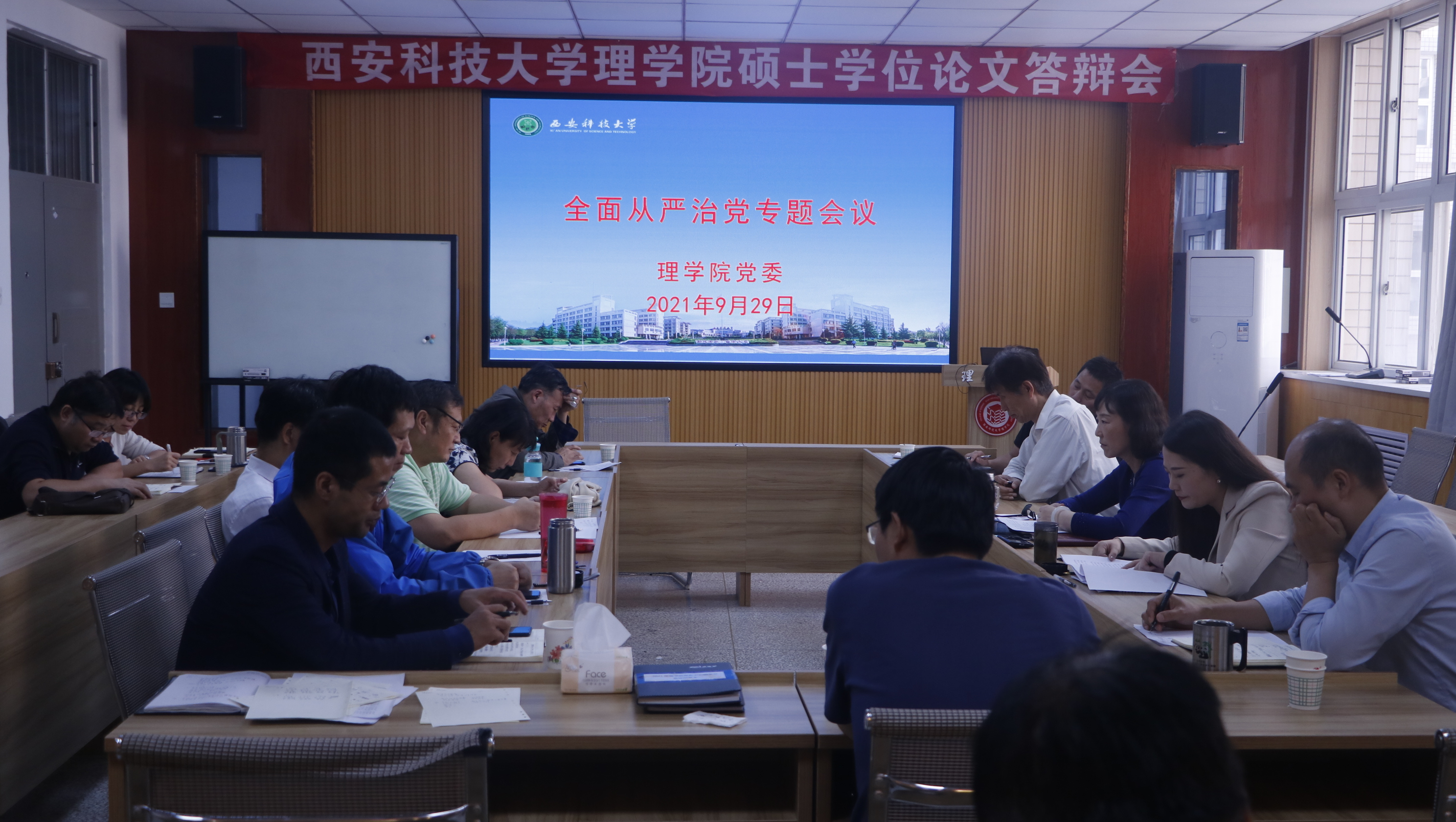 9月29日下午,威廉体育官方网站在临潼校区骊山校园召开党委扩大会,专题研究全面从严治党、意识形态工作。公司班子成员、党委委员、党支部书记、系主任、实验中心主任、全体辅导员和行政人员共计21人参加会议。会议由党委书记孙颜红主持。