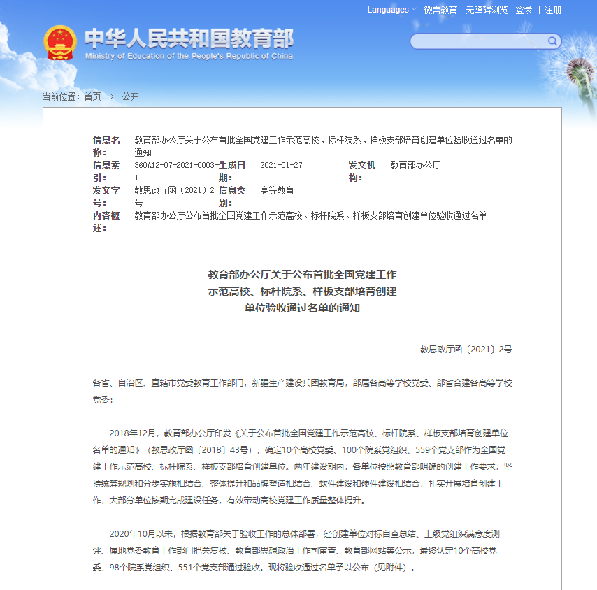 2021年1月26日,首批“全国党建工作样板支部”培育创建单位--威廉体育官方网站数学系第一党支部(原理公司教工第一党支部)通过验收。