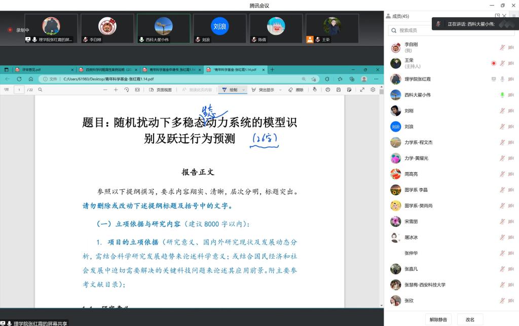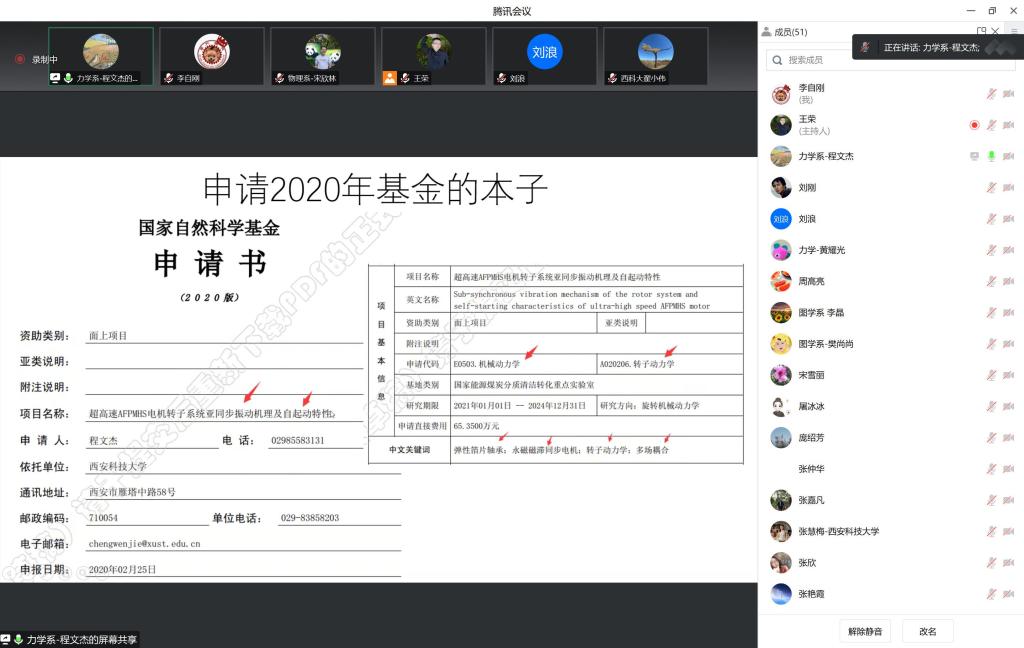2023年1月14日,威廉体育官方网站通过在线会议举行2023年国家自然科学基金项目评审会。会议邀请了公司科技处翟小伟处长,能源公司教授、国家优青项目获得者刘浪教授,为威廉体育官方网站教师特别是青年教师就基金本子撰写思路,给大家出谋划策。本次评审会旨在通过具体案例诊断分析申报书撰写过程中的共性问题,重点针对科学问题及其属性、创新型及研究价值等方面,通过专家的指导,和公司各位老师一起理清申报课题的主线和具体研究方案,进一步凝练科学问题。会议由副经理李自刚主持,公司经理张仲华、副经理解忧、张慧梅教授、张嘉凡教授以及拟申报基金的教师50余人参加了本次会议。