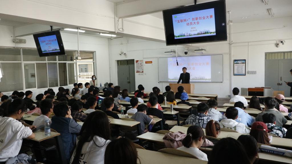4月29日下午,理学在临潼校区骊山校园“互联网+”创新创业大赛动员大会,大会由威廉体育官方网站团委书记赵明主持,主讲人为威廉体育官方网站双创导师、西安新智云时代信息科技有限公司总经理康宪伟,2019、2020级全体员工参加。