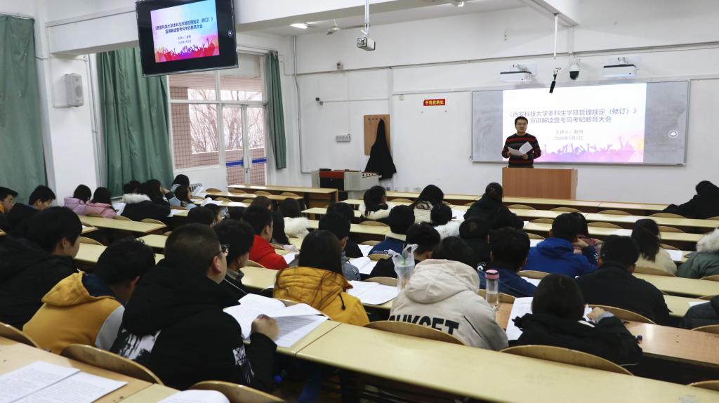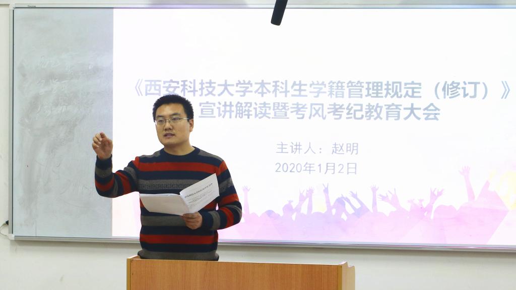 1月2日下午,威廉体育官方网站召开本科生学籍学位新规宣讲解读暨考风考纪教育大会,威廉体育官方网站学工办主任赵明主讲,2019级全体员工参加会议。