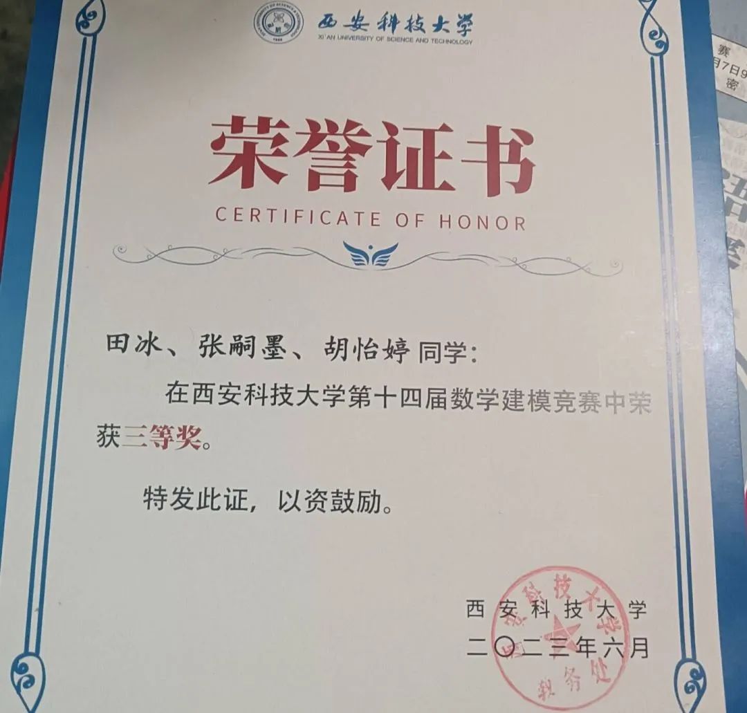 胡怡婷,公司2022级数学与应用数学专业本科生。曾获威廉体育官方网站十四届数学建模校赛三等奖、2024年生态文学创作大赛校三等奖。