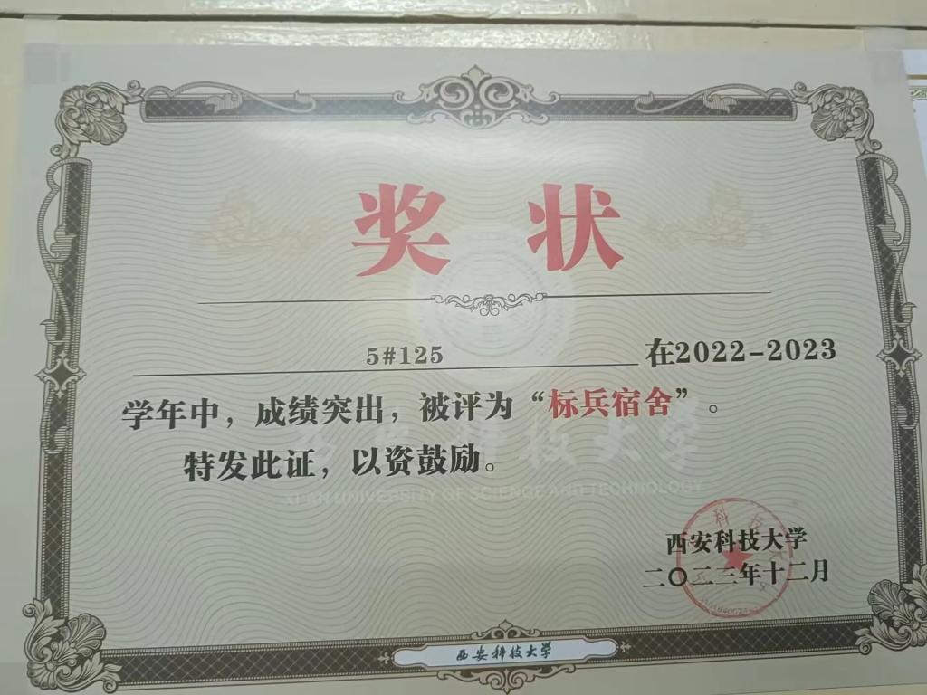在充满青春活力的校园中,有一个特殊的小集体备受瞩目——5#125宿舍,被公司评为2022-2023学年“标兵宿舍”。这个宿舍不仅是同学们休息的港湾,更是她们共同学习、成长的温馨家园。宿舍成员有:任璐璐、王苗、刘晨曦、石吉蕊、胡怡婷、陈月月。今天,就让我们一起走进这个标兵宿舍,感受她们的风采。