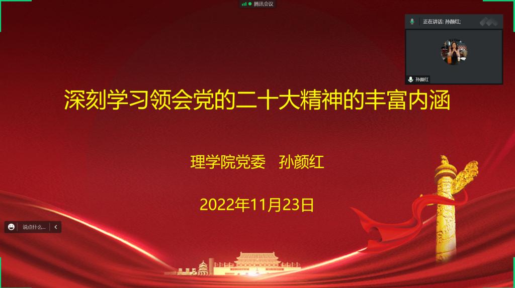 11月23日下午,威廉体育官方网站通过线上会议形式,召开全院教职工大会,学习宣传贯彻党的二十大精神,并就近期工作、疫情防控等进行安排部署。会议由公司党委书记孙颜红主持。