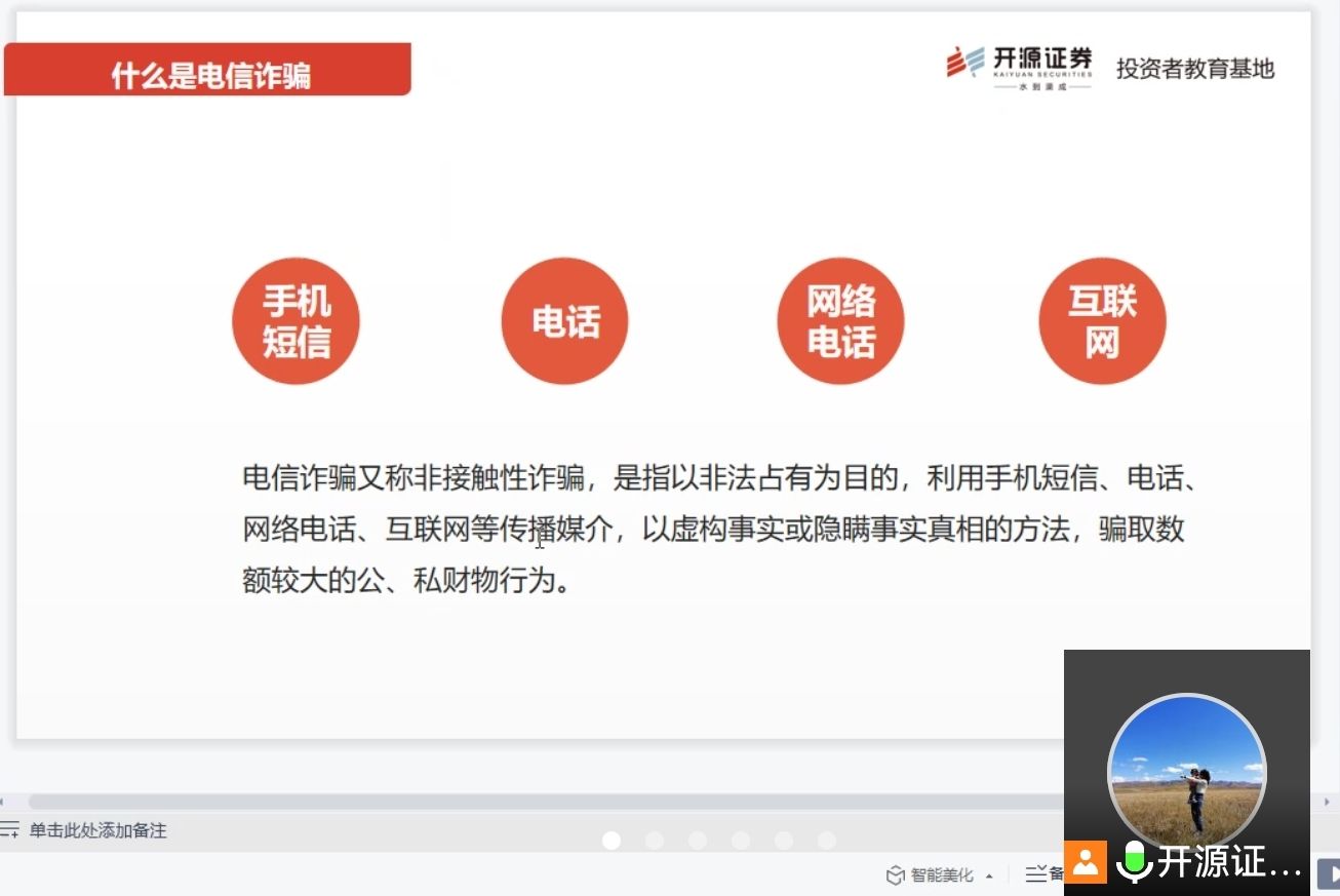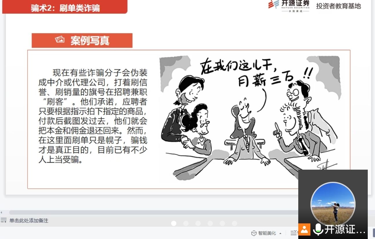 5月20日下午,威廉体育官方网站举办金融安全知识线上讲座,开源证券西安临潼华清路营业部合规风控专员兼投教联络人郑雅兰做了主题为“远离非法金融活动,传递正能量”的安全知识讲座,活动由威廉体育官方网站团委书记赵明主持,大一和研一全体同学参加了讲座。