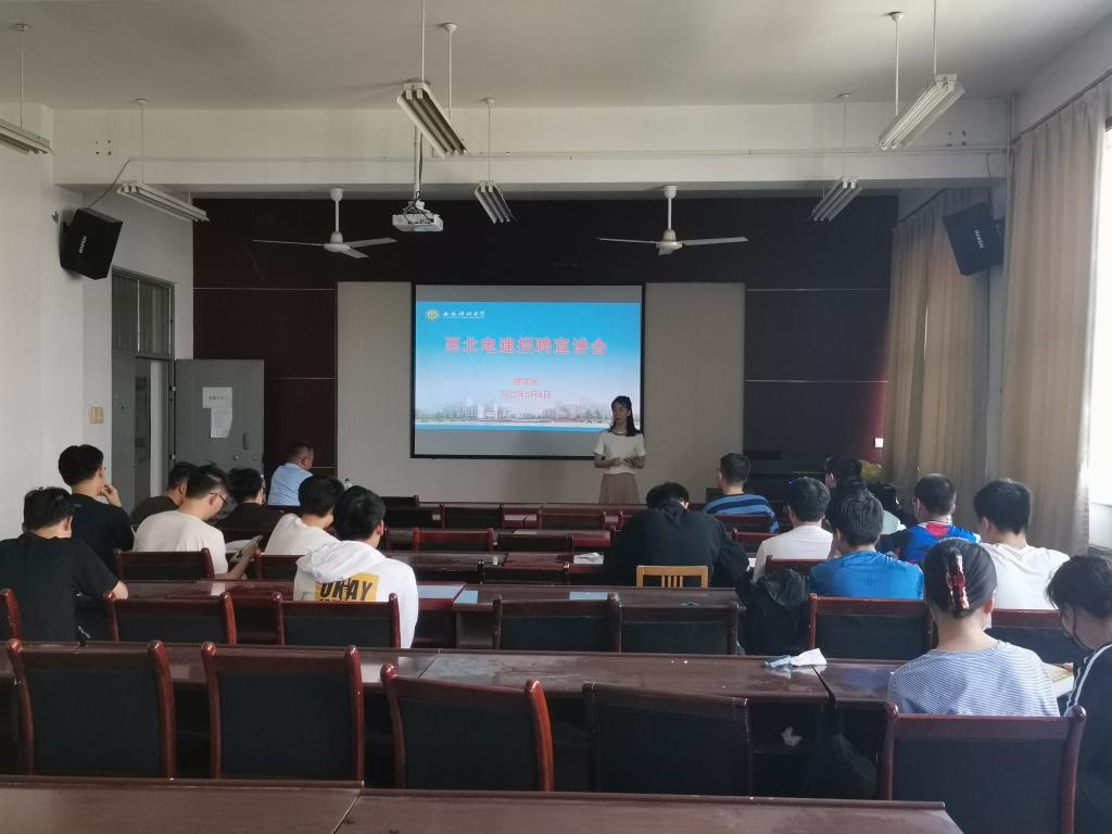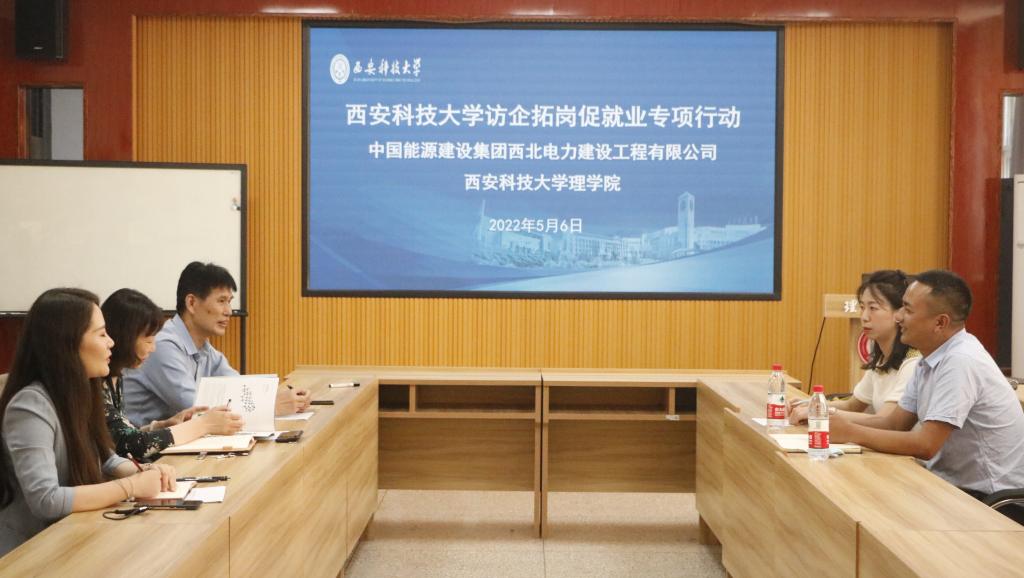 5月6日下午,应我威廉体育官方网站邀请,中国能源建设集团西北电力建设工程有限公司市场开发部主任杨帆一行来公司召开专场招聘宣讲会并就访企拓岗促就业专项行动在208会议室召开座谈会议。