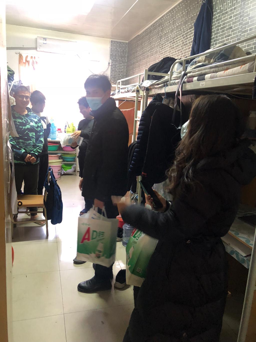 为全面掌握疫情防控期间员工校园学习生活情况,深入了解员工思想动向和实际需求,诚挚表达公司对广大学子的新年慰问。1月1日、1月2日,理公司党委书记孙颜红、经理李明、副书记高欣、辅导员侯斌刚、办公室主任白云逐一走访了公司全部员工宿舍,积极解决员工在特殊时期的困难和问题,并为员工们送上口罩和温暖的新年慰问。