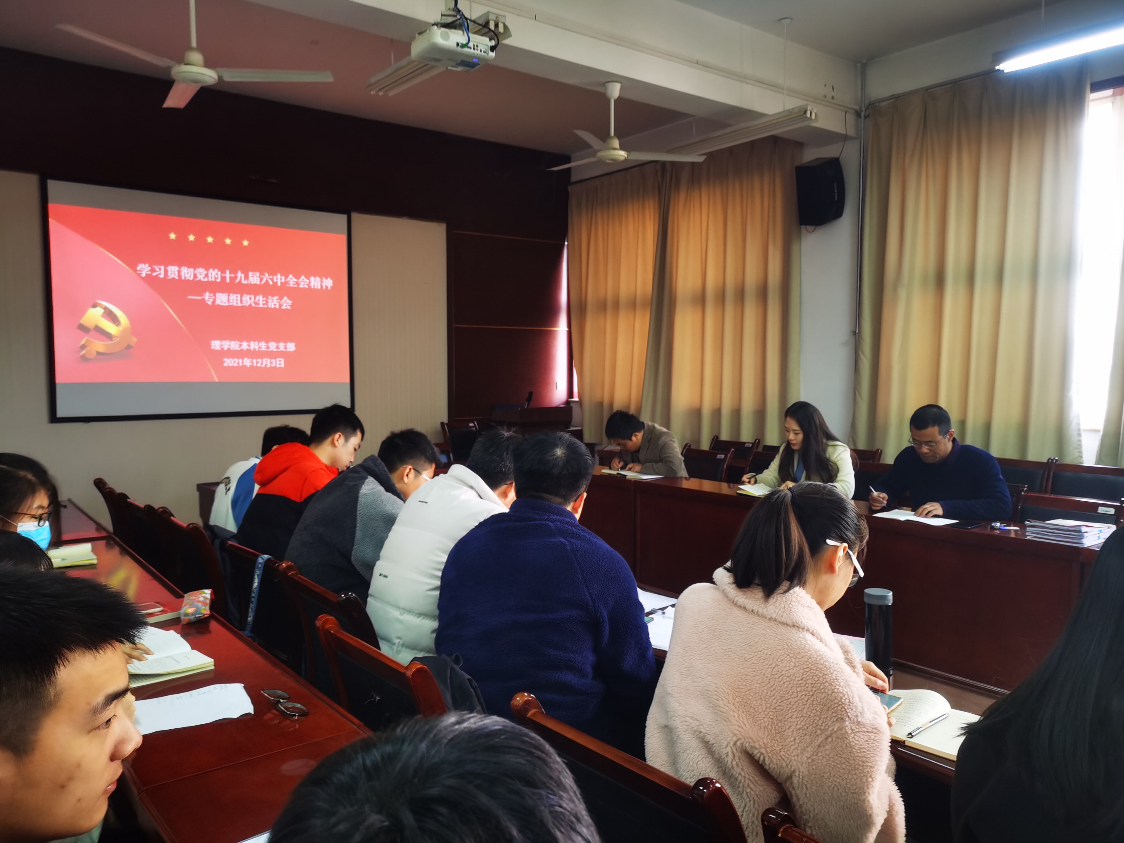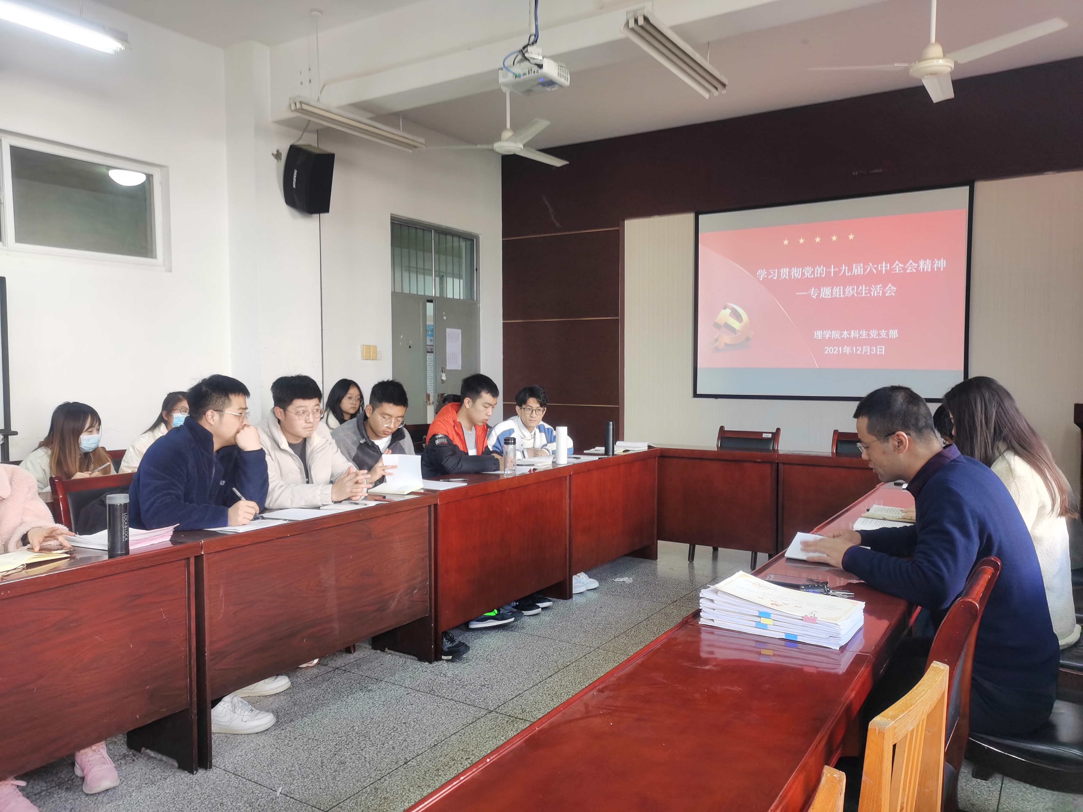 12月3日上午,威廉体育官方网站本科生党支部在实验楼220会议室召开学习贯彻党的十九届六中全会精神专题组织生活会,会议由党支部书记侯斌刚主持,支部全体成员参会。