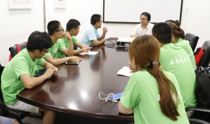 随后,胡世超、工程造价部胡名峰与实践团在公司三楼会议室召开座谈会。胡世超对实践团的初次来访表示欢迎,就企业的用人理念做了详细阐述:公司推进“机会平等,差别对待”的人性化用人机制;倡导“人人是人才,人人尽其才;一流员工,一流企业”的管理理念,并从企业角度分析了当前老员工在参加工作后存在的一些问题,同时鼓励实践团员工参加工作以后要脚踏实地、锐意进取,开拓创新。胡名峰就工程施工中的一些问题与实践团师生进行了交流。