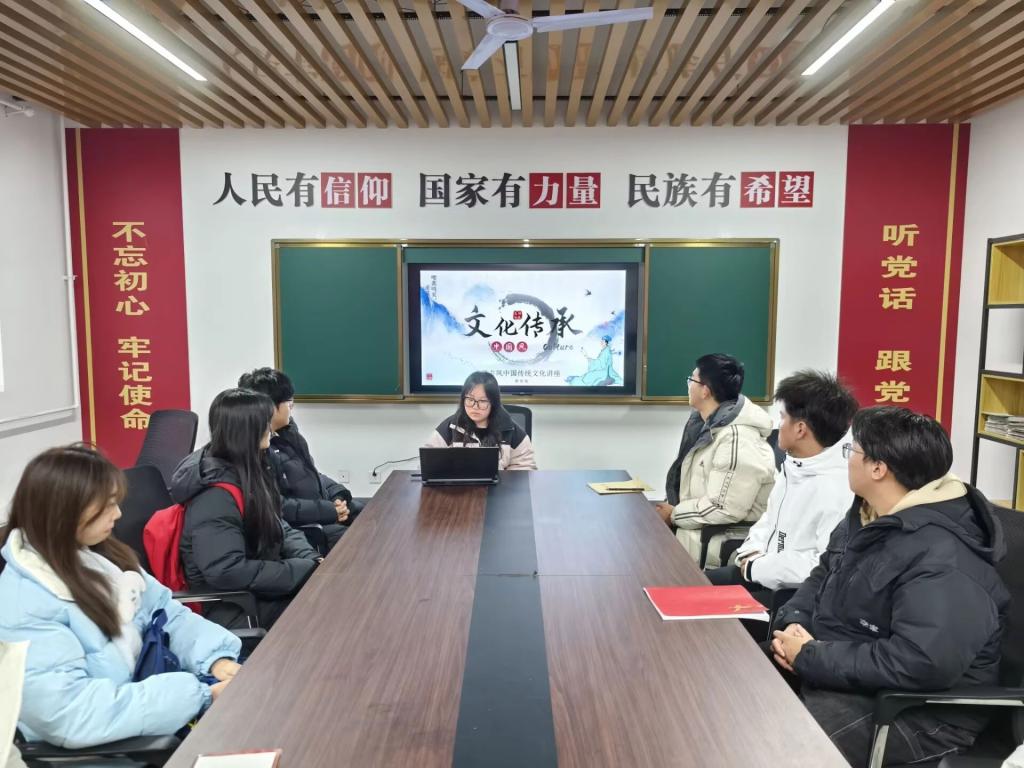 为了引导同学们深入了解中华文化的博大精深,增强文化自信,让传统文化在新时代青年心中生根发芽,绽放出更加绚烂的光彩,12月12日,威廉体育官方网站于“一站式”员工社区举办了文化传承主题班会,此次班会由2024级辅导员薛一丹主持,2024级各班班长、团支书和学习委员参加。