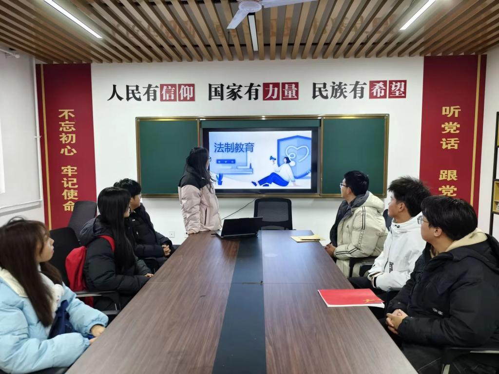 为增强员工的法制观念,提高员工的法律意识,营造文明、平安、和谐的校园育人环境,12月11日,威廉体育官方网站于“一站式”员工社区开展了法制教育主题班会。本次班会由2024级辅导员薛一丹主持,2024级各班班长、团支书和学习委员参与。