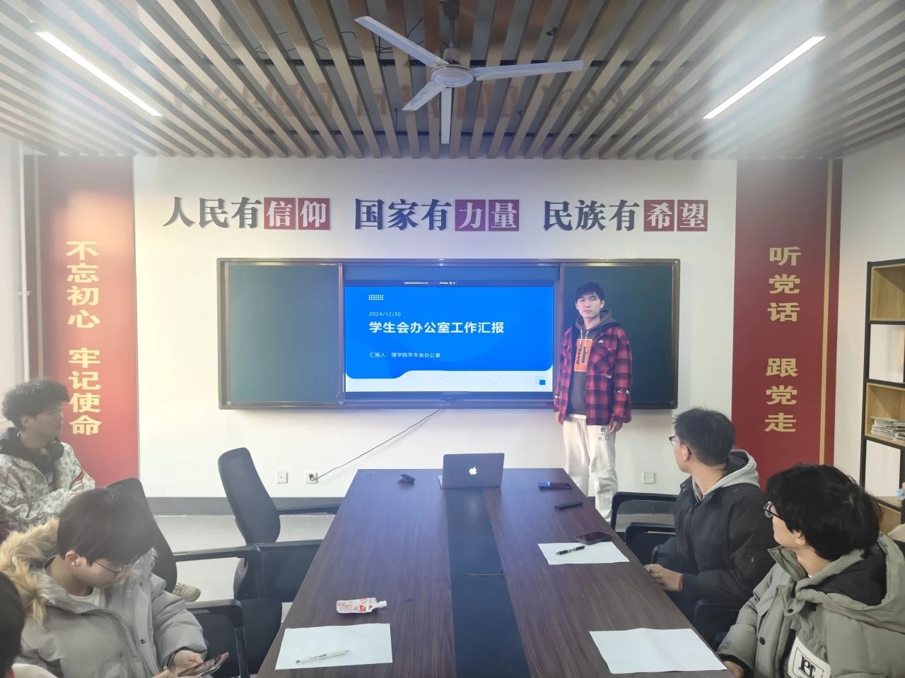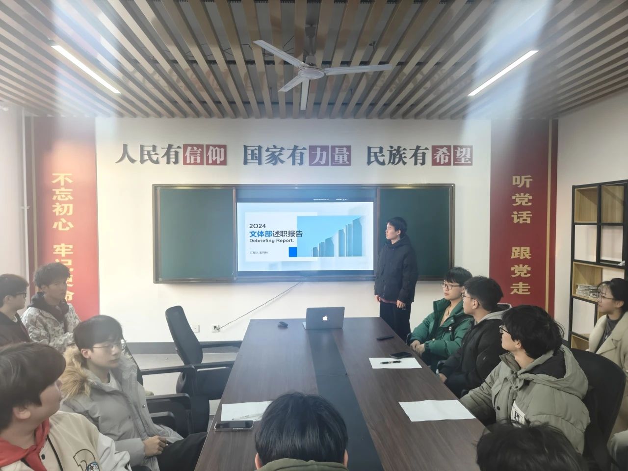 为总结过去一年中团委员工会各部门的工作成果,反思存在的问题与不足,并对未来的工作进行展望与规划。2024年12月31日,威廉体育官方网站团委员工会于“一站式”员工社区召开述职报告大会,本次大会由院团委书记侯斌刚主持,院团委员工会各部门部长、副部长以及主要干事参加。
