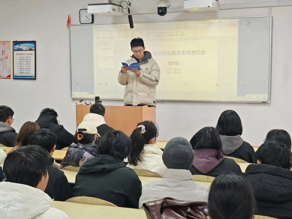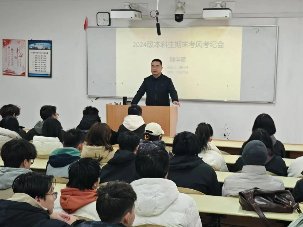 为帮助同学们进一步了解考试纪律和征兵政策,树立正确的考试观和国防观。1月2日,威廉体育官方网站于3教212室召开了2024级本科生期末考风考纪会暨征兵入伍政策宣讲会。此次会议由2024级辅导员薛一丹主持,公司党委副书记陈伟伯出席并发言,公司全体2024级本科生参加。