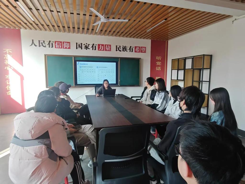 薛一丹强调了学业学情分析对于同学们学业发展的重要性,她结合同学们上学期的考试成绩,从课程通过率、成绩分布等方面进行了详细的数据分析。通过直观的图表展示,同学们清晰地了解到自己在班级中的学习位置以及各学科的整体学习状况 。