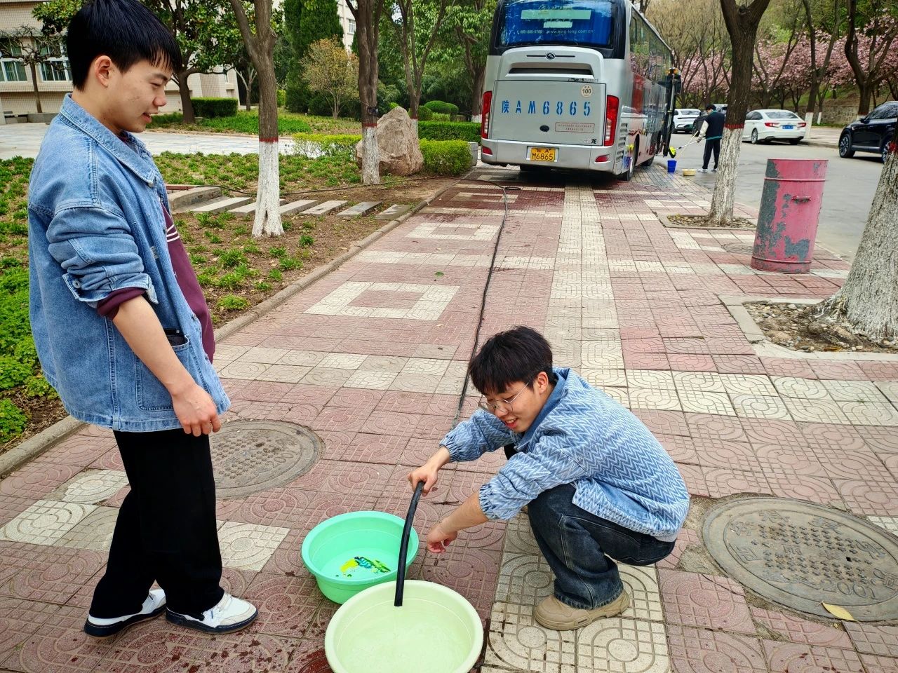 志愿者们准时在校车停放处集合,用浸湿的抹布,认真擦拭车窗、座椅、扶手以及车内的各个角落。经过一下午的不懈努力与辛勤劳动,原本沾满灰尘的校车焕然一新。车身在阳光的照耀下闪闪发亮,车内的座椅、扶手洁净如新,志愿者们的脸上都洋溢着自豪与满足的笑容。