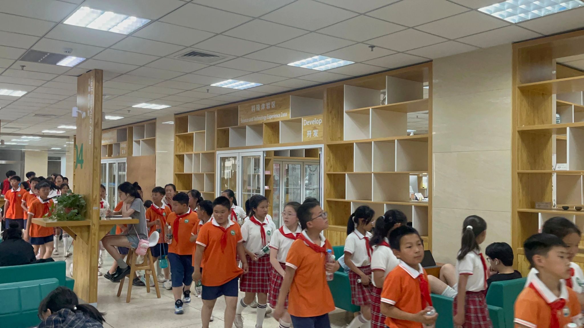 大学的图书馆书香四溢,丰富的科普书籍吸引了孩子们的目光。在温馨的“我最喜欢的书籍”分享会上,坡底小学的孩子们踊跃发言,分享自己阅读科普读物后的心得与收获。在这里小员工们同图书馆AI机器人对话,体验了现代科技和图书馆的完美结合。这不仅是一次知识的拓展,更激发了他们对科学世界主动探索的浓厚兴趣。