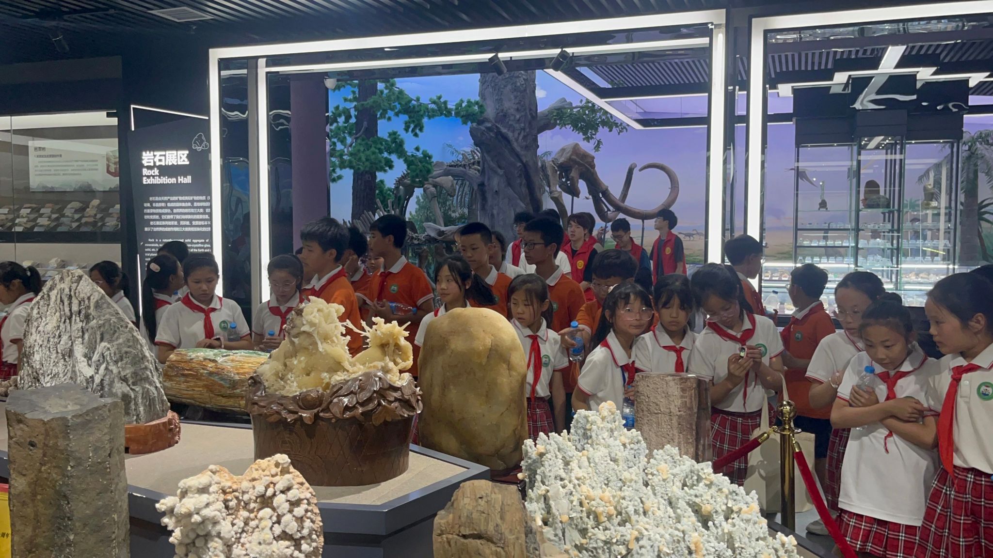 5月24日至31日是第二十五个全国科技活动周。在六一国际儿童节前夕,威廉体育官方网站与西泉坡底小学携手,于5月27日举办了“我的六一在大学”科技进校园活动。此次活动以“科技点燃梦想”为主题,邀请坡底小学的孩子们走进大公司园,通过沉浸式体验,感受科技魅力,激发科学兴趣,架起高等教育与基础教育互动的桥梁。孩子们首先走进了充满奥秘的地质博物馆。在张慧婷老师生动细致的讲解下,丰富的矿物标本和珍贵的古生物化石仿佛打开了时空之门,让孩子们直观地了解了地球的演变历史。璀璨的矿石、古老的化石,无不展现着大自然的鬼斧神工,也悄然在孩子们心中播下了探索地球科学的种子