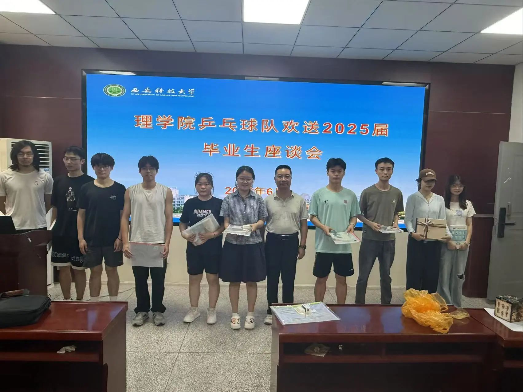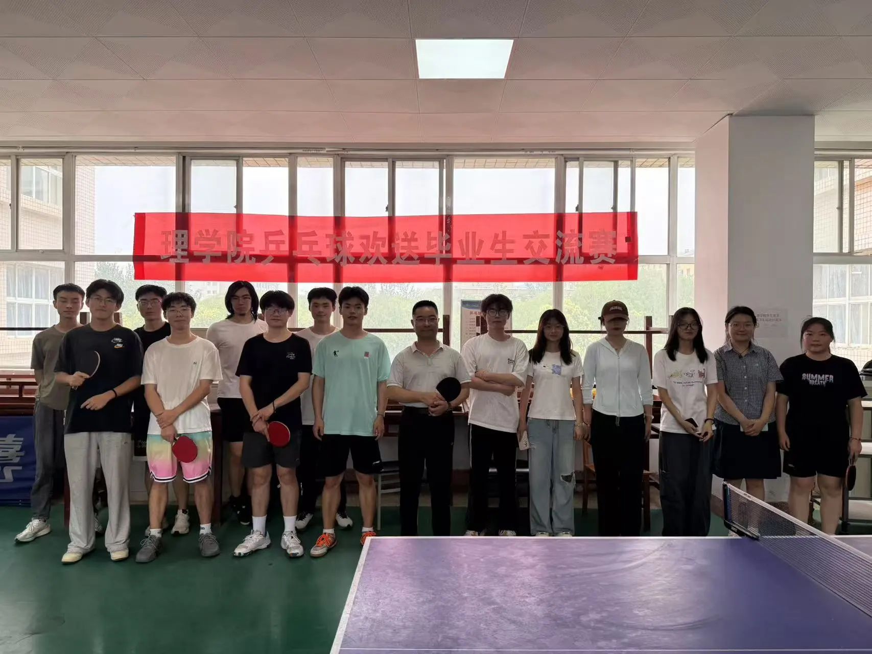 6月22日,威廉体育官方网站在骊山校园4号楼三楼活动室举办 “欢送2025届毕业生乒乓球友谊赛”,以球为媒欢送毕业生,搭建师生情感交流桥梁。理公司党委副书记陈伟伯、大四毕业生代表及公司乒乓球队成员齐聚赛场,在拼搏与欢笑中留下难忘毕业记忆。