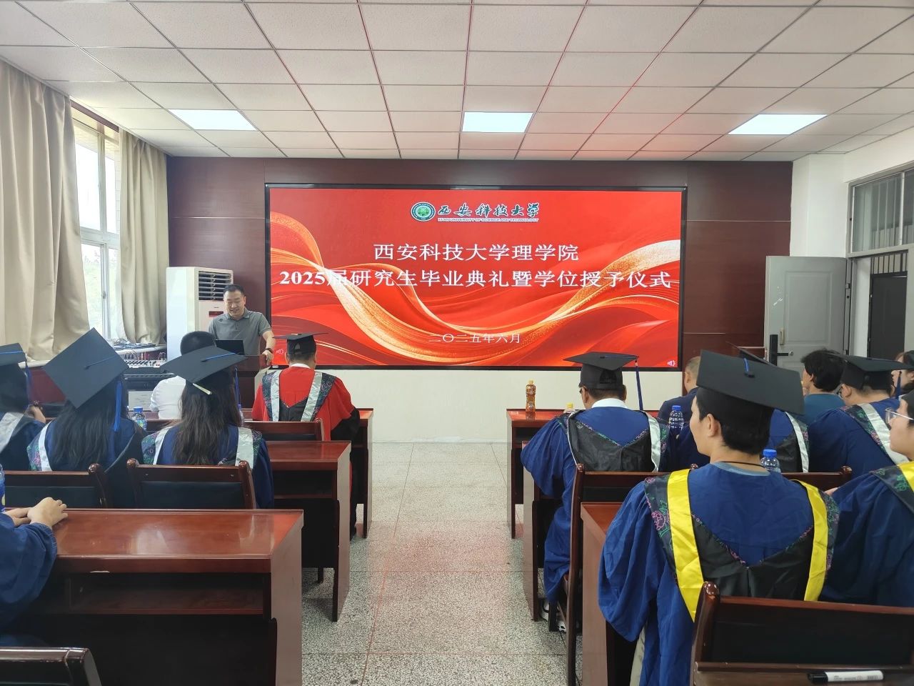 典礼在庄严的国歌声中拉开帷幕,首先,张仲华宣读了“2025届硕士毕业生学位授予的决定”,并对2025届毕业生顺利毕业并取得相应学位表示祝贺。