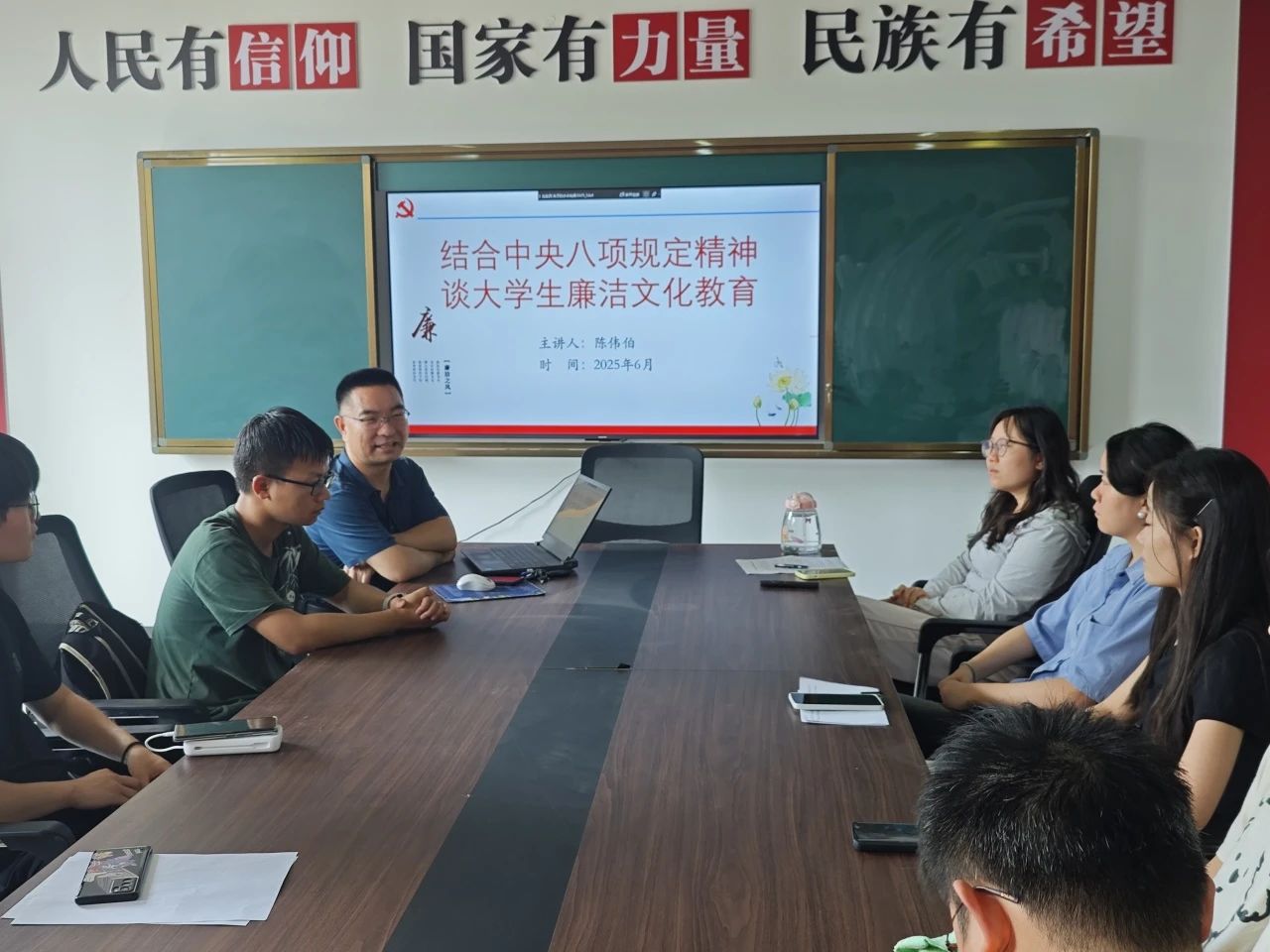 为深入贯彻落实中央八项规定精神,进一步加强党支部作风建设,2025年6月,威廉体育官方网站员工党支部于“一站式”员工社区开展了中央八项规定精神学习教育,本次学习教育由公司党委副书记陈伟伯和本科生党支部书记薛一丹主持。