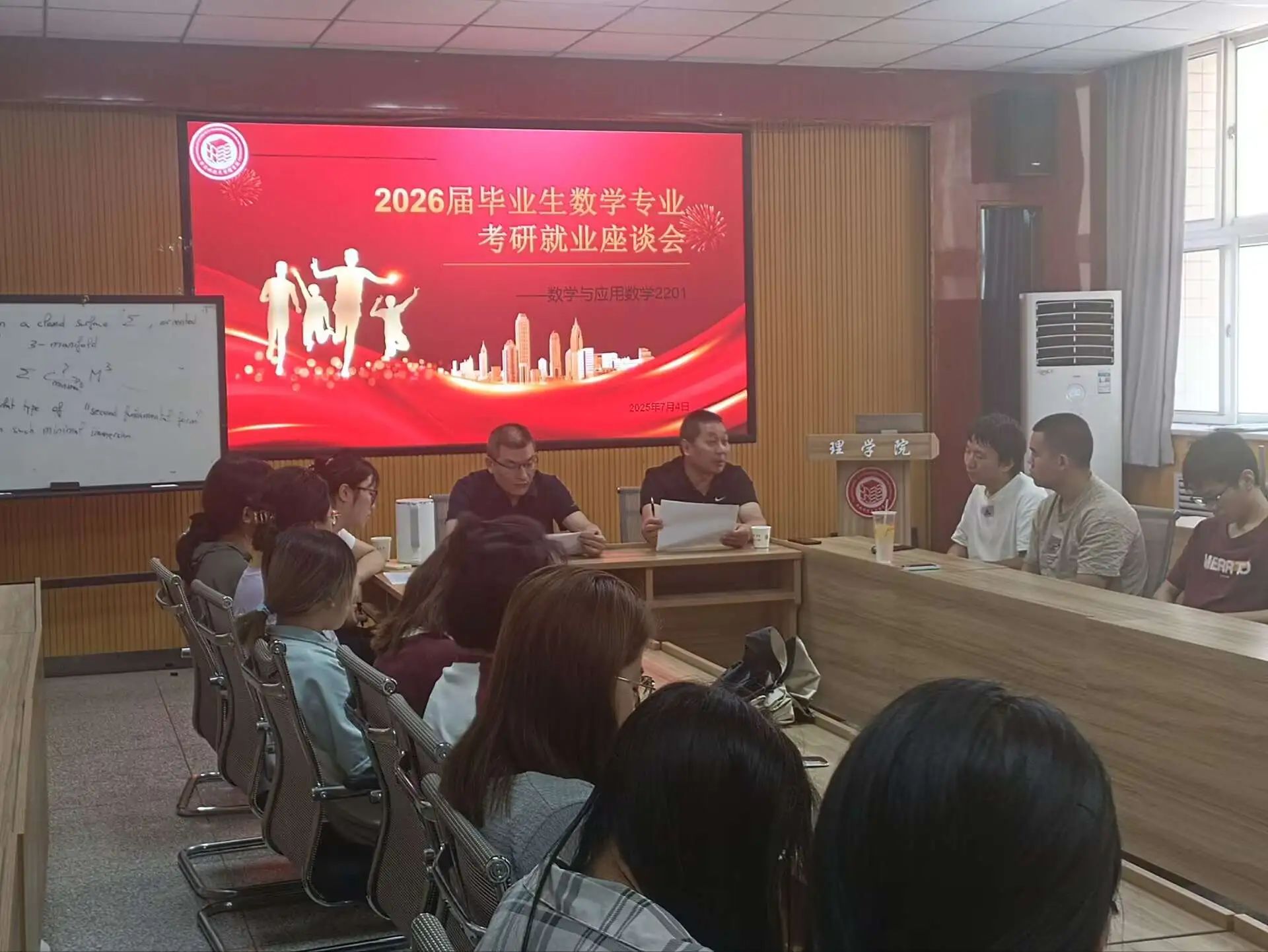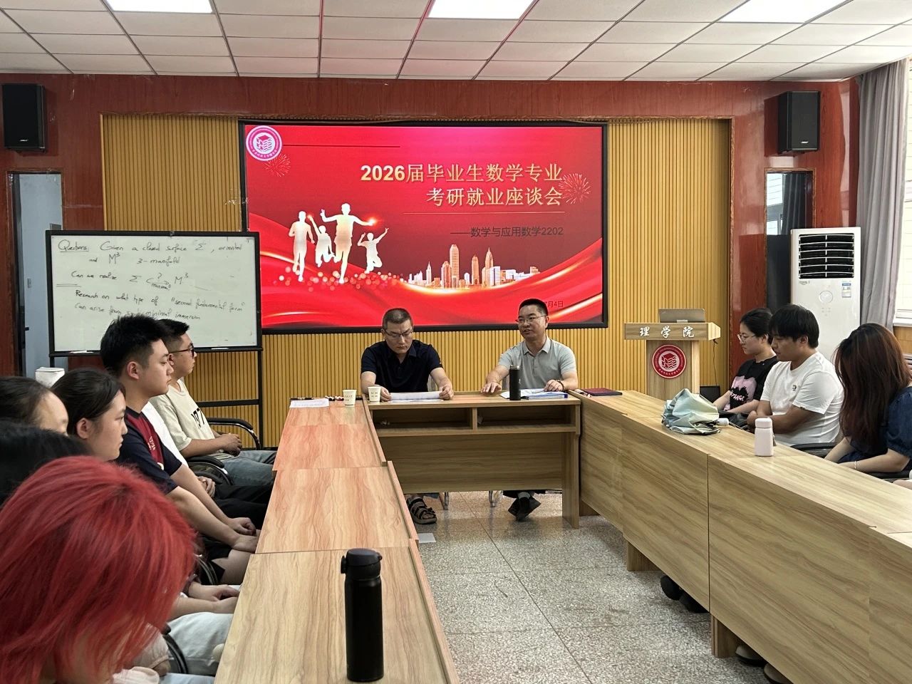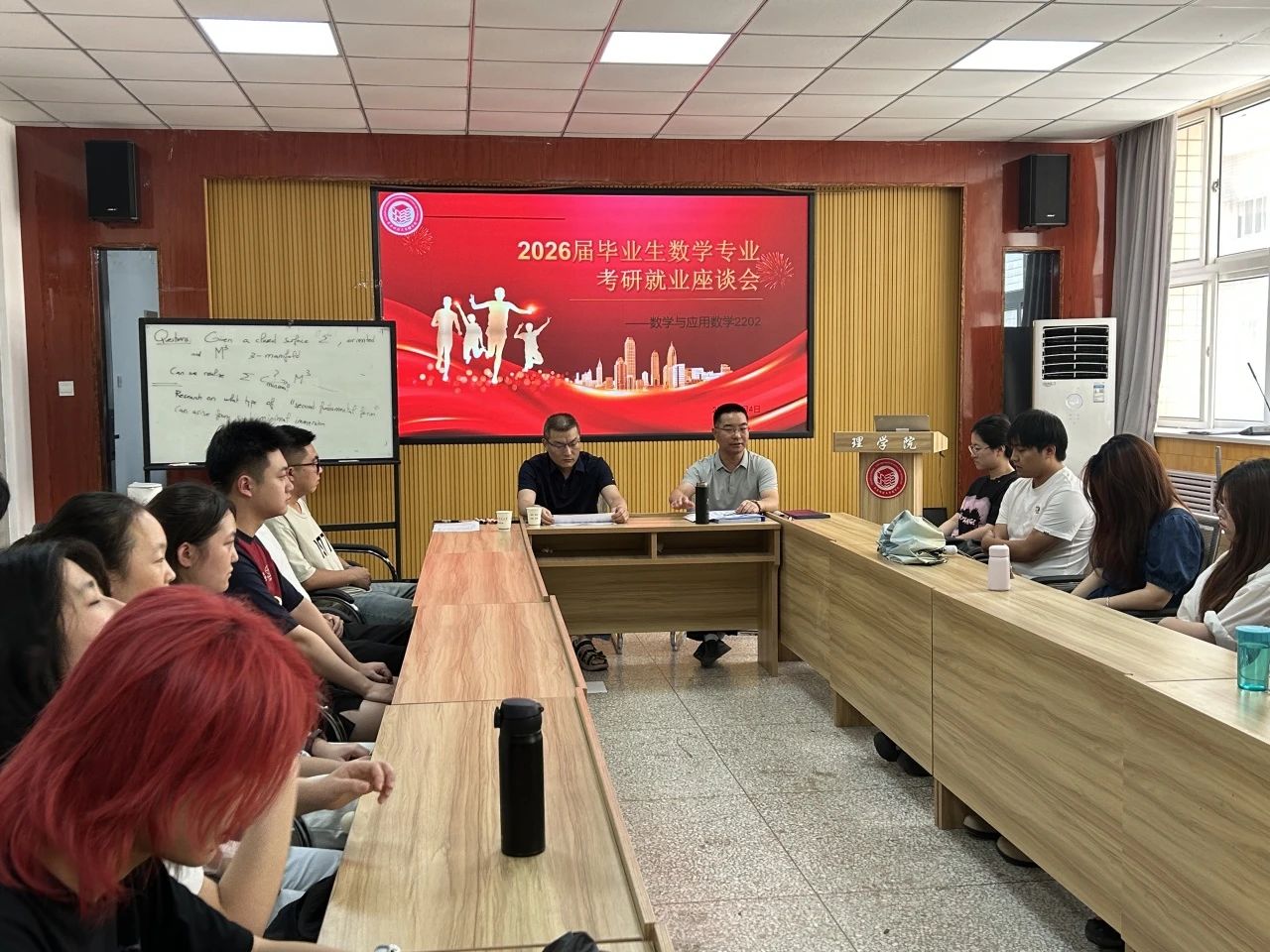 为助力2026届数学专业毕业生明确方向,合理规划未来,7月4日,威廉体育官方网站于208会议室举办了2026届毕业生数学专业考研就业座谈会,威廉体育官方网站经理张仲华、公司党委副书记陈伟伯、数学系系主任王彪和2026届辅导员薛一丹出席了此次会议。