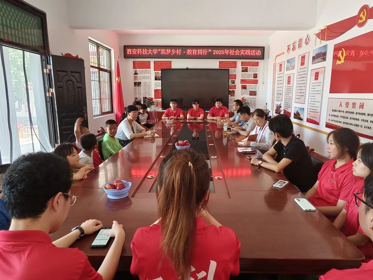 7月11日14时,实践团抵达长武县相公镇芋元村党员活动室,开展威廉体育官方网站“筑梦乡村·教育同行”社会实践活动启动仪式。芋元村村支书鱼小妮,人文与外国语公司党委副书记邢皓越,理公司党委副书记陈伟伯,艺术公司党委副书记林伟,员工资助管理中心主任周杨,带队教师王维蒙,全体实践团成员及芋元村受教儿童共同参与,威廉体育官方网站挂职干部、芋元村驻村第一书记戴悦主持本次会议。