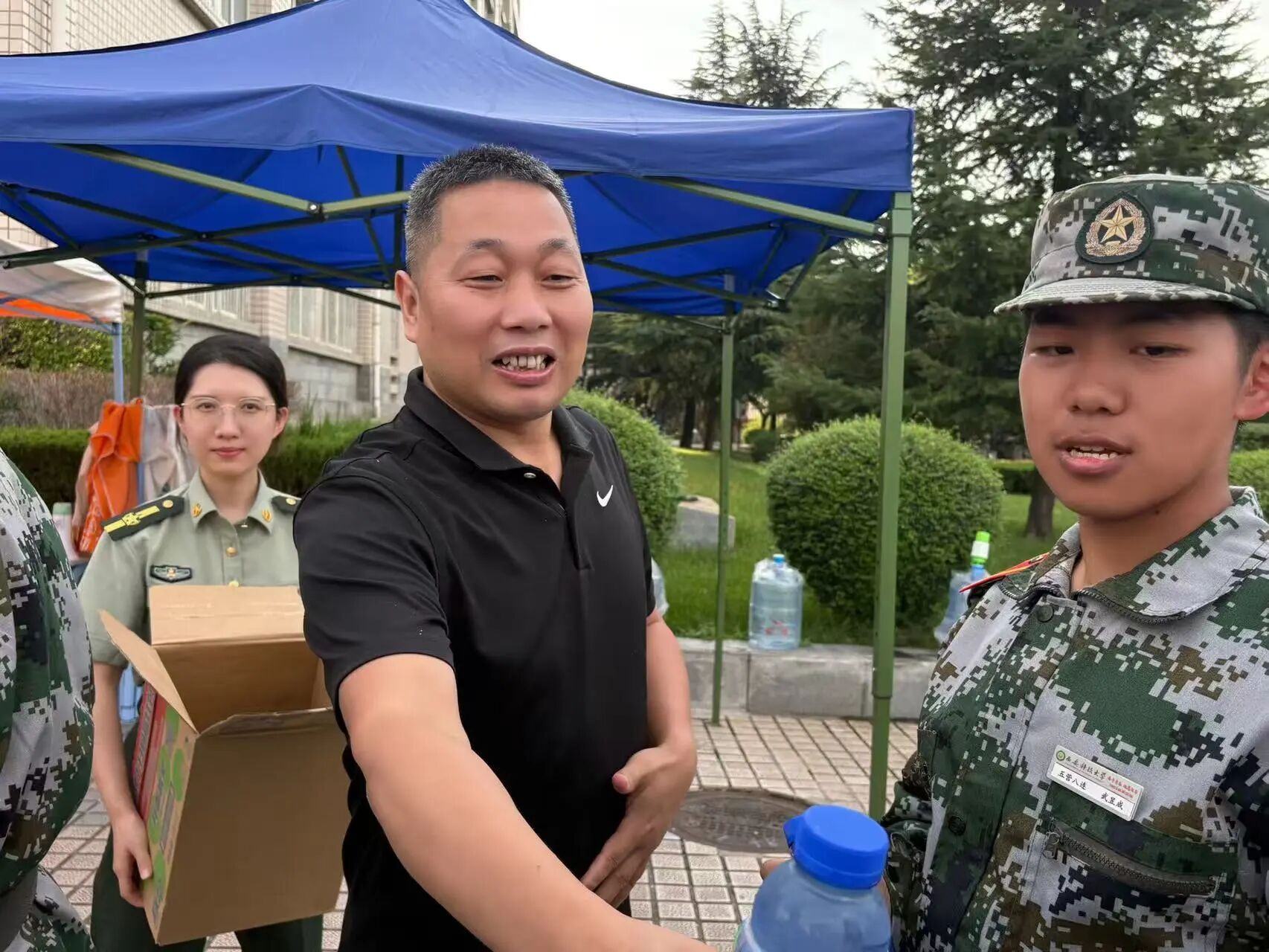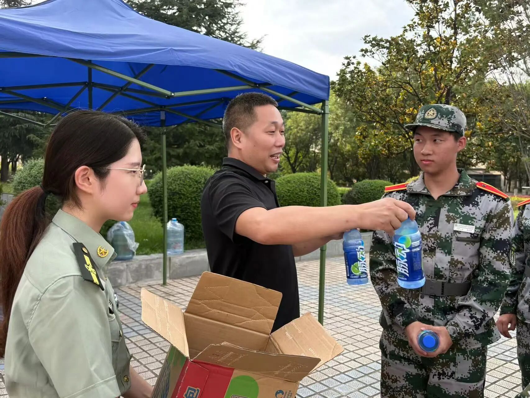 慰问过程中,老师们一同将精心准备的清凉解暑饮料逐一发放到每一位新生和教官手中。一箱箱清凉的饮品不仅消解了训练的疲惫,更传递了公司大家庭的温暖与关爱。同学们脸上洋溢着喜悦的笑容,纷纷表示感谢公司的关心,一定不辜负领导老师的期望,刻苦训练,磨砺自我,交出一份优异的军训答卷。