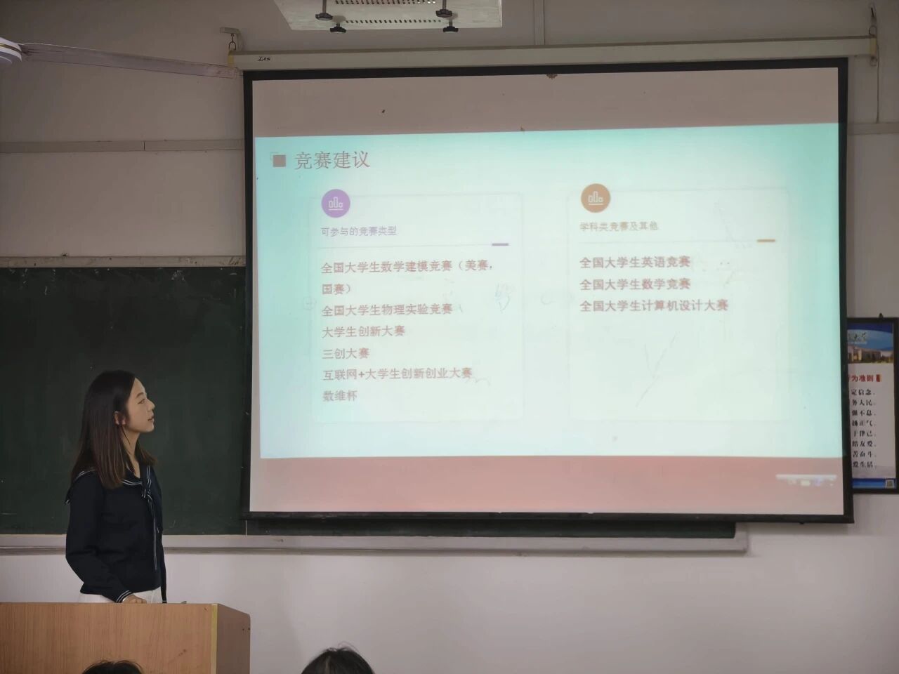 为帮助 2025 级本科生明确学科竞赛备赛方向,提升科研创新与实践能力,9月24日,威廉体育官方网站于1-104教室举办了老员工科创竞赛经验分享会。活动由数学与应用数学2402班王沂廷主讲,2025级全体本科生参加了此次活动。