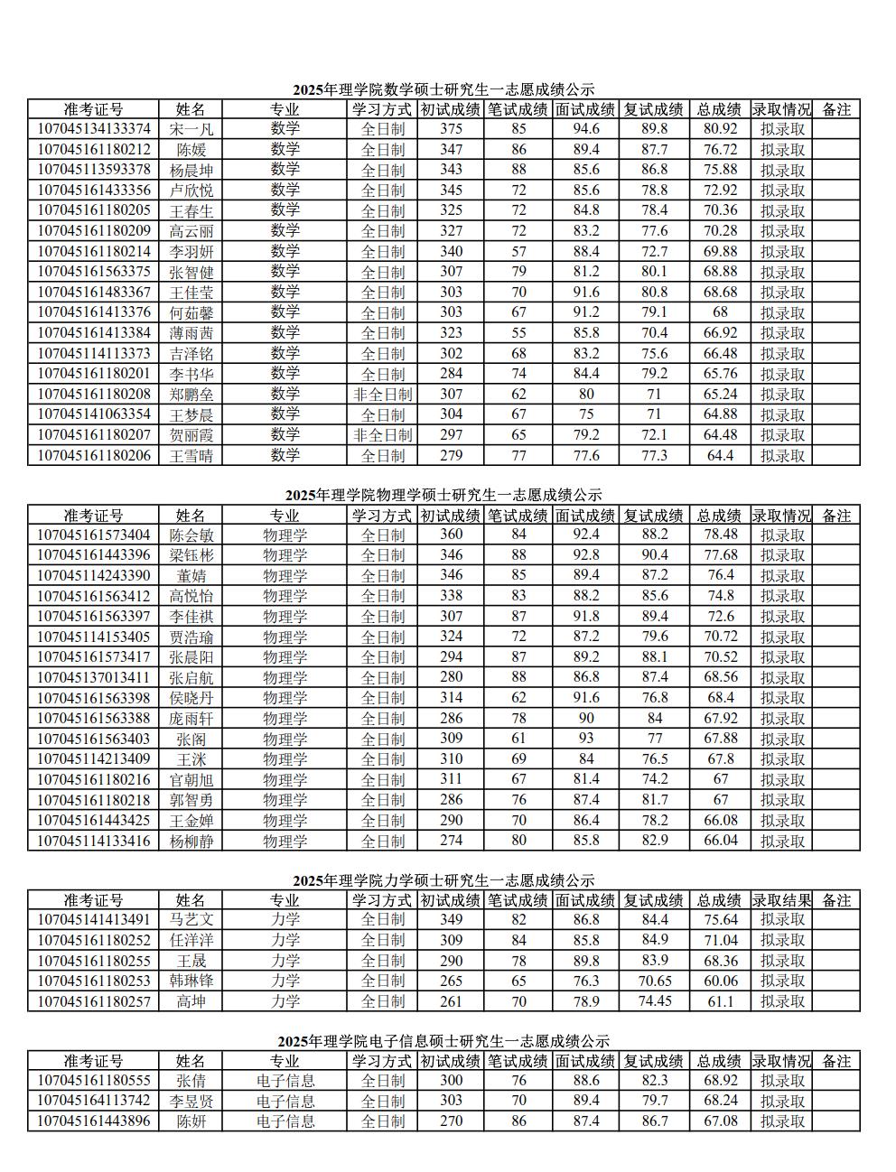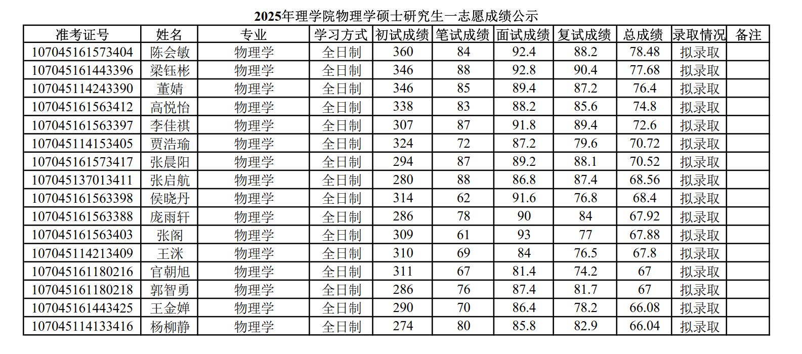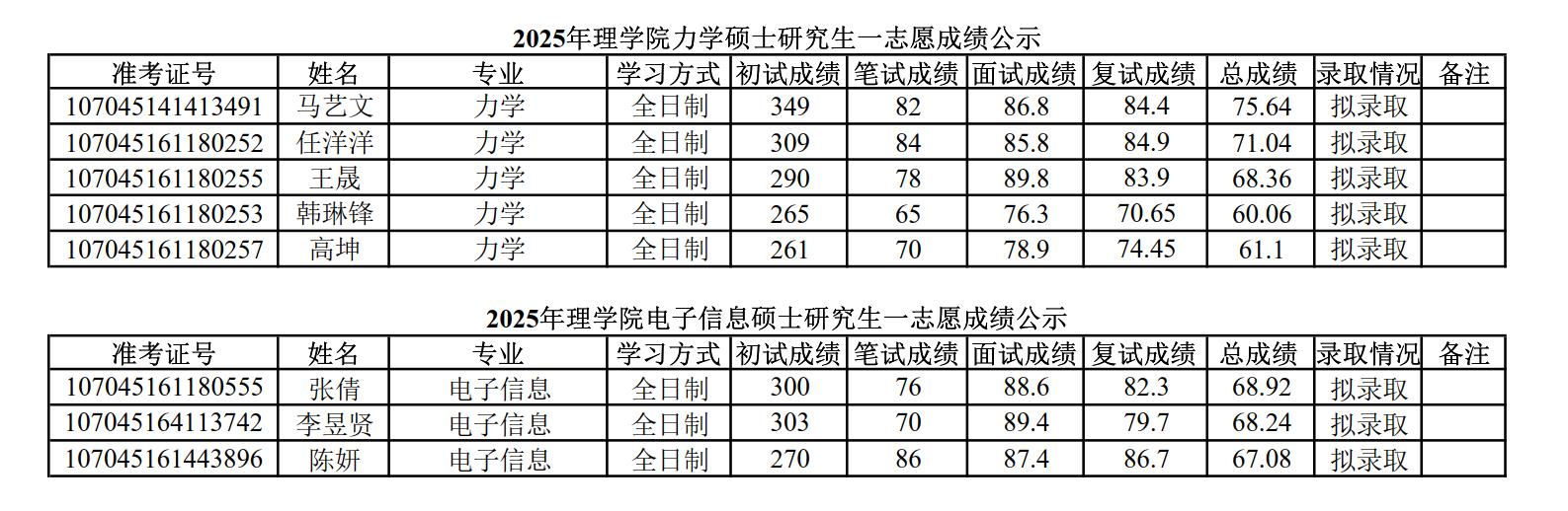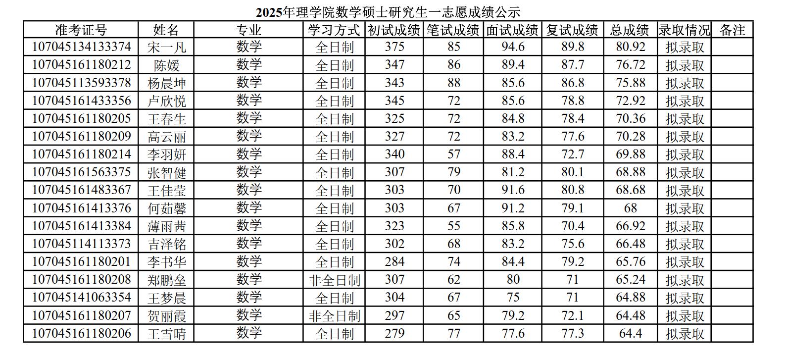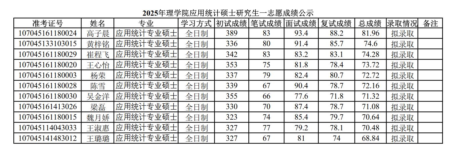 2025年威廉体育官方网站硕士研究生招生考试一志愿成绩公示