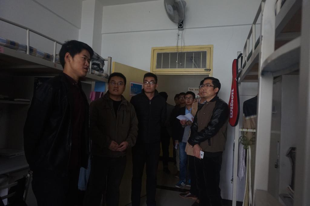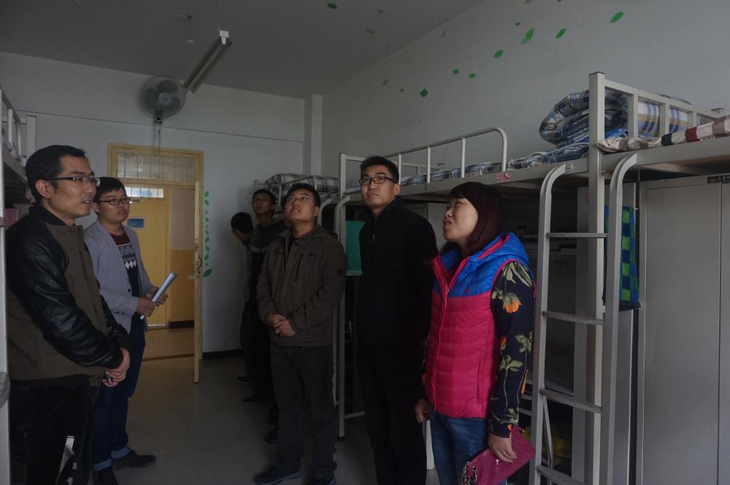 11月2日13:00,15级新生宿舍文化节正式展开检查。理公司党委副书记贾哲老师、分团委书记赵明老师、15级辅导员姚红霞老师、兼职辅导员王红博老师以及部分员工会成员进行了检查。