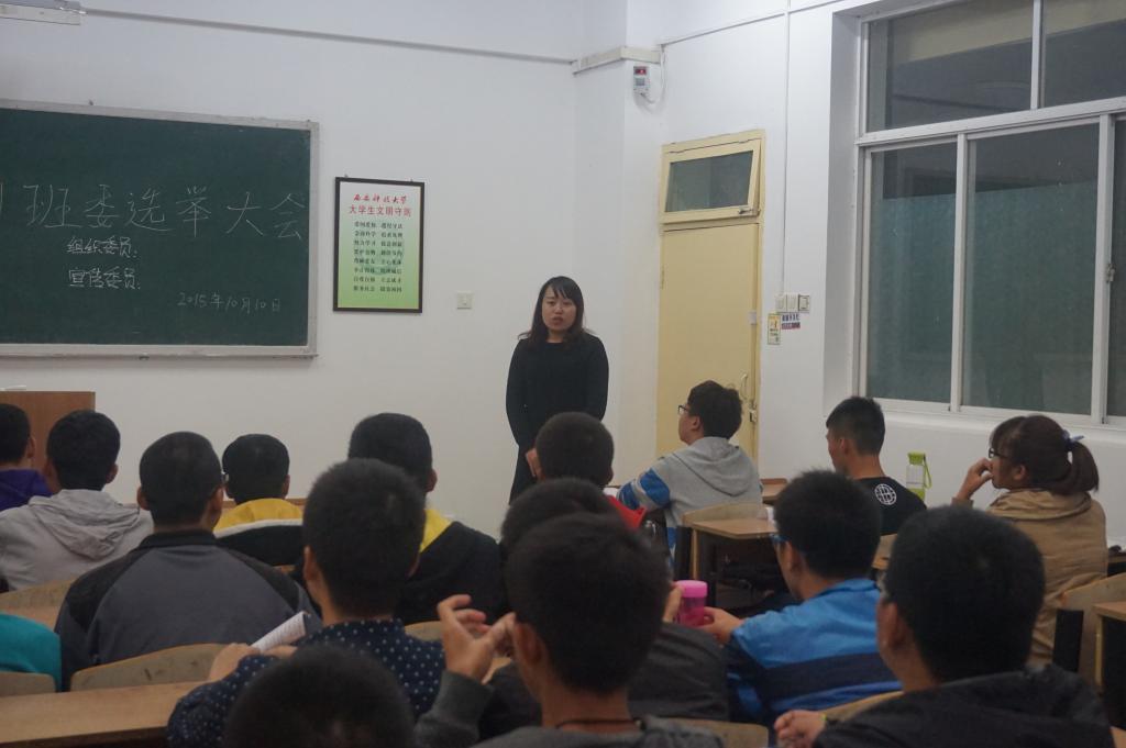 10月10日晚上七点半,威廉体育官方网站于一教举行了班委选举大会。在辅导员姚红霞老师的带领下,大一各班代理班主任、员工会部分成员以及15全体员工参加了这次选举大会。